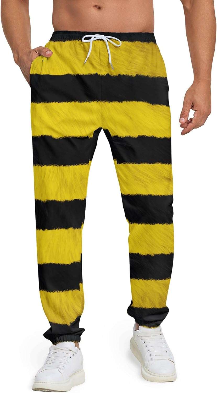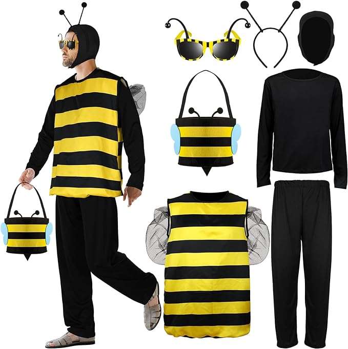 Haull 7 Pcs Adult Bee Costume Kit Men Bumble Bee Outfit Bee Glasses Headband Basket Accessories Funny Halloween Cosplay Party