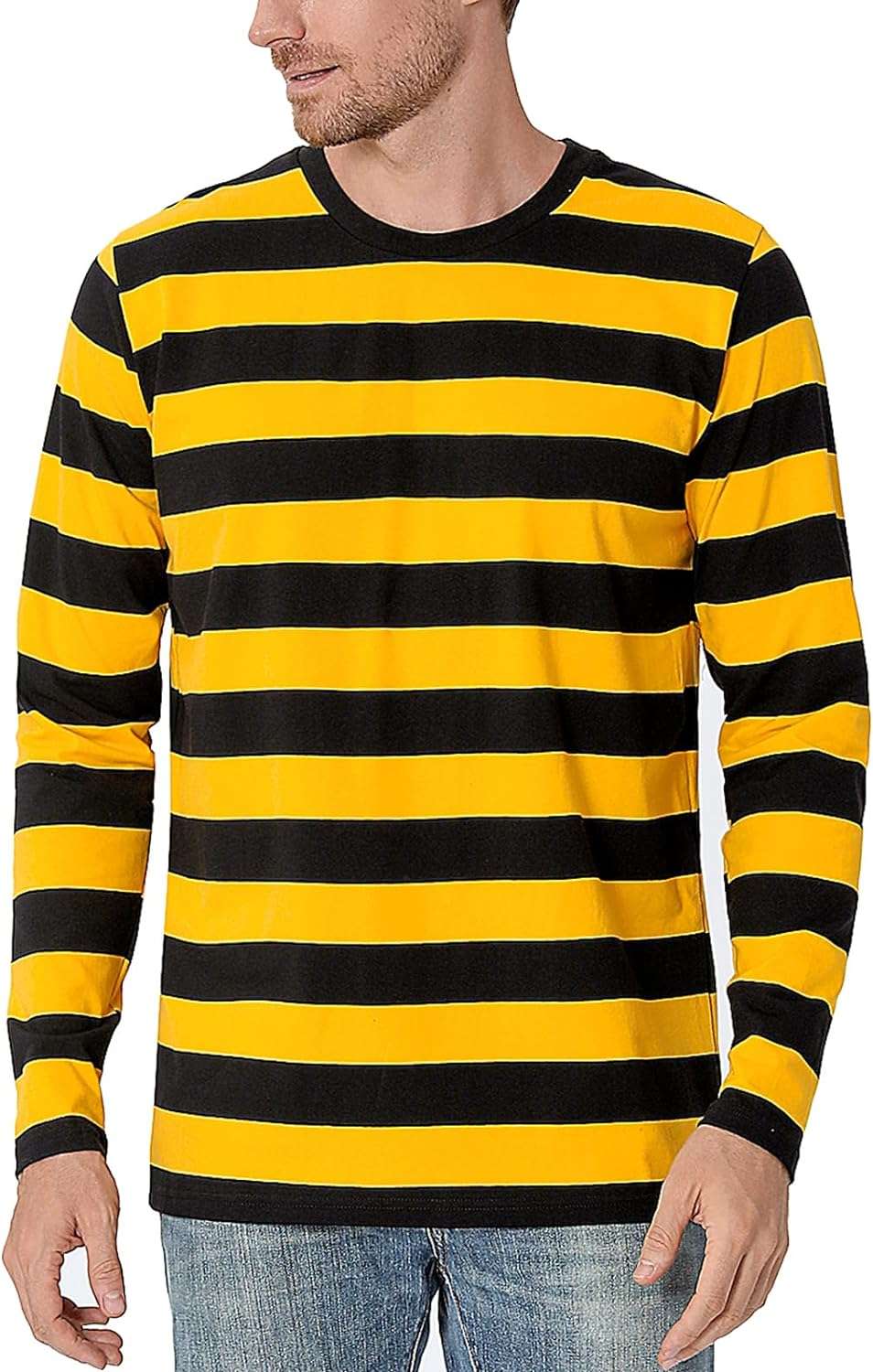 Funny World Men’s Striped T-Shirt Crewneck Long Sleeves Basic Casual Top